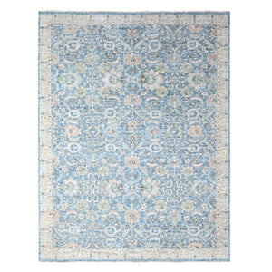 10'1"x13'9" Imperial Blue, Hand Knotted, Afghan Angora Oushak With All Over Vines Design, Natural Dyes, 100% Wool, Oriental Rug FWR539196