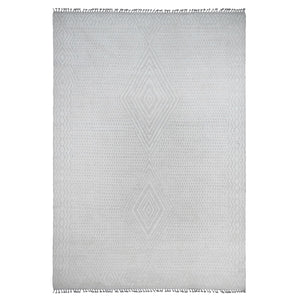 9'10"x14'1" Pearl White, Moroccan Weave, Tone On Tone, Intricate Diamond Pattern, Hand Knotted, 100% Wool, Oriental Rug FWR120480