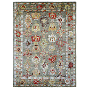 9'10"x13'3" Sage Green, Afghan Angora Oushak With Colorful Leaf Design, 100% Wool, Hand Knotted, Natural Dyes, Oriental Rug FWR539154