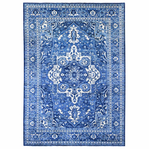 10'x13'10" Denim Blue, Peshawar Serapi Heriz Revival, High Mountain Ghazni Wool, Hand Knotted, Soft Pile, Denser Weave, Oriental Rug FWR123948
