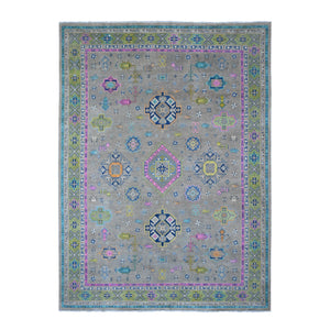 9'7"x13'4" Cloud Gray, Colorful Fusion Kazak, Caucasian Design With Geometric Medallions, 100% Wool, Hand Knotted, Oriental Rug FWR125844