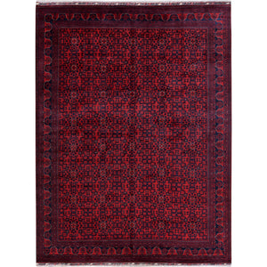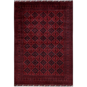 9'9"x13'3" Crimson Red, Afghan Khamyab With Tribal Motifs Pattern, Soft And Velvety Wool, Hand Knotted, Vegetable Dyes, Oriental Rug FWR4578