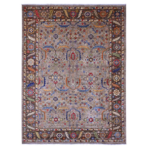 10'x13'4" Stone Gray, Aryana Grade, Peshawar With Heriz All Over Design, Colorful, High Mountain Wool, Densely Woven, Hand Knotted, Vegetable Dyes, Oriental Rug FWR538788