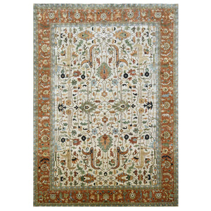 10'x14'3" Chiffon White, Heriz All Over Design, Soft Pile, Natural Dyes, Hand Knotted, Hand Spun New Zealand Wool, Oriental Rug FWR457338
