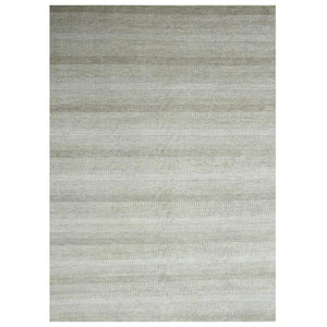 10'x14' Bone White, Modern Grass Design, Hand Knotted, Borderless, Denser Weave, Tone On Tone, Wool And Silk, Lush And Plush, Oriental Rug FWR458010