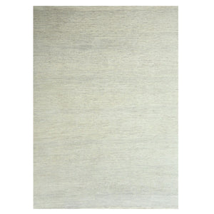 10'1"x14' Pearl White, Moroccan Weave With Grid Design, Solid, Textured Wool, Hand Knotted, Oriental Rug FWR457266
