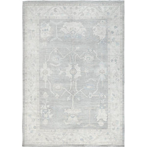 9'8"x13'10" Misty Gray, White Wash Peshawar With All Over Leaf Design, Hand Knotted, Pure Wool, Densely Woven, Oriental Rug FWR5508