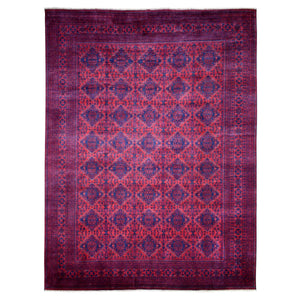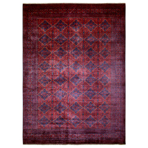 10'x13'8" Deep And Saturated Red, Natural Dyes Afghan Khamyab Velvety Wool, Geometric Design Hand Knotted Oriental Rug FWR435972