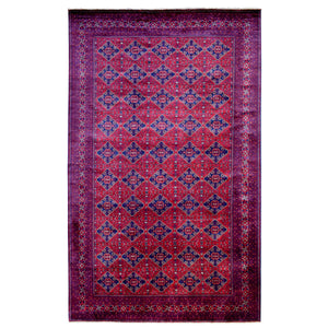9'8"x13'1" Deep And Saturated Red Hand Knotted With Tribal Design, Soft And Shiny Wool Afghan Khamyab Oriental Rug FWR436008