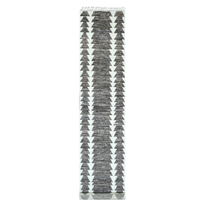 3'1"x16'8" Umber Brown, Moroccan Weave With Serrated Line Design, Tone On Tone, Hand Knotted, Soft Wool, Textured Pile, Wide Runner, Oriental Rug FWR123300