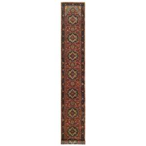 2'7"x17'7" Brick Red, Antiqued Heriz, Hand Spun New Zealand Wool, Hand Knotted, Xl Runner Oriental Rug FWR525738