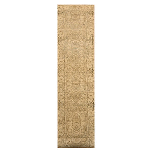 2'4"x20' Khaki Brown, Agra Medallion Design, Zero Pile, Distressed, Shaved Low, Hand Knotted, 100% Wool, Xl Runner, Oriental Rug FWR457242