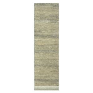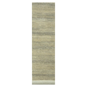 2'7"x20'4" Khaki Brown, Modern Grass Design, Hand Knotted, Borderless, Denser Weave, Tone On Tone, Wool And Silk, Lush And Plush, Xl Runner, Oriental Rug FWR458094
