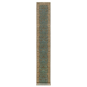 2'9"x19'8" Cerulean Blue, Tabriz Revival, Hand Knotted, Hand Spun New Zealand Wool, 300 Kpsi, Xl Runner, Oriental Rug FWR548862