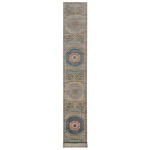 2'6"x20'2" Misty Gray, Afghan Peshawar With Birds Of Paradise Design, Hand Knotted, Soft Wool, Vegetable Dyes, Xl Runner, Oriental Rug FWR123690