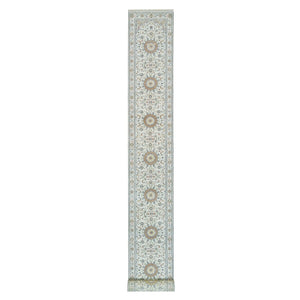 2'6"x20'6" Powder White, 250 Kpsi, Extra Soft Wool, Hand Knotted, Nain With Center Medallion Flower Design, Xl Runner Oriental Rug FWR395964