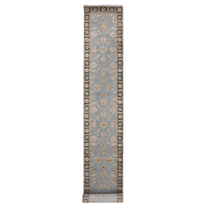 2'8"x21' Blue Fox And Cloud White, Rajasthan All Over Pattern, Thick And Plush, Wool And Silk, Hand Knotted Xl Runner Oriental Rug FWR452184