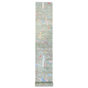 2'6"x21'9" Sage Green, Soft Wool, Afghan Peshawar With Birds Of Paradise Design, Hand Knotted, Vegetable Dyes, Xl Runner, Oriental Rug FWR123684
