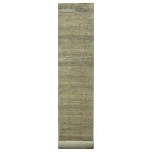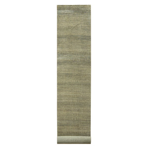 3'x21'10" Ecru Brown, Modern Grass Design, Hand Knotted, Borderless, Denser Weave, Tone On Tone, Wool And Silk, Lush And Plush, Xl Runner, Oriental Rug FWR458106