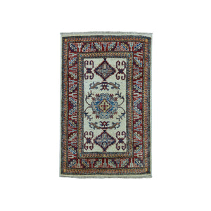 2'1"x3'2" Ivory Super Kazak Pure Wool Geometric Design Hand-knotted Oriental Rug FWR306078