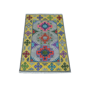 1'10"x2'9" Yellow Fusion Kazak Organic Wool Hand Knotted Mat Oriental Rug FWR333576
