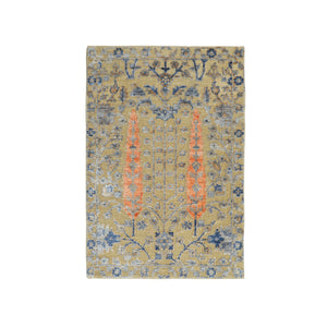 2'1"x3' Cypress Tree Design Silk With Textured Wool Hand Knotted Oriental Rug FWR349062