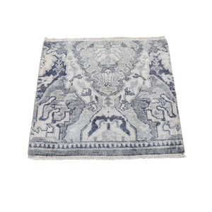 2'x2'10" Abstract Design Hi-low Pile Silver-blue Hand Knotted Wool & Silk Oriental Rug FWR351024