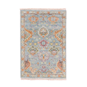 2'1"x3'3" Sea Gray, Soft Pile, Hand Knotted Afghan Angora Oushak, Natural Dyes, Wool Weft, Village Motifs All Over Design, Mat Oriental Rug FWR537228