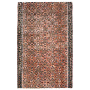 2'9"x3'10" Canyon Sunset Orange, Hand Knotted With Boteh All Over Design, Distressed Look, Cropped Thin, Soft And Silky Wool, Evenly Worn With No Holes, Persian Sarouk Mir, Antique Oriental Rug FWR520104