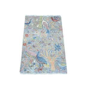 2'x3'1" Pewter Gray, Birds Of Paradise, Hand Knotted 100% Wool Afghan Peshawar, Vegetable Dyes, Oriental Mat Rug FWR537348
