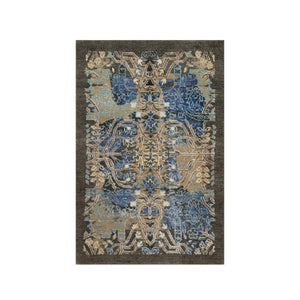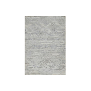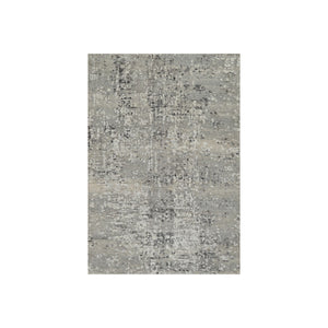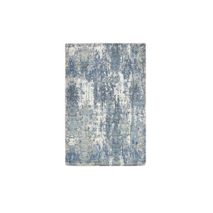 2'1"x3' Stone Blue, Abstract Design, Denser Weave, Hi-low Pile, Wool And Real Silk, Hand Knotted, Mat, Oriental Rug FWR453228