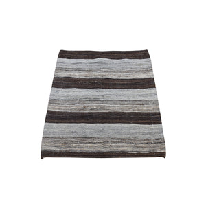 2'x3'1" Dark Brown Striped Design Flat Weave Afghan Kilim Hand Woven Mat Oriental Rug FWR396864