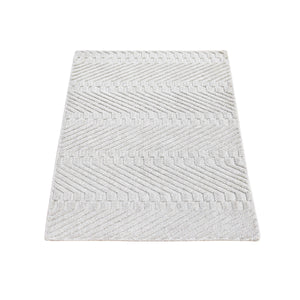 2'x3' Ivory Hand Knotted Pure Silk With Textured Wool Tone On Tone Oriental Rug FWR357228