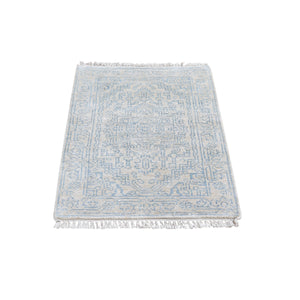 2'1"x3'1" Ivory Wash Out Wool And Pure Silk Persian Heriz Design Hand Knotted Oriental Rug Sh666148