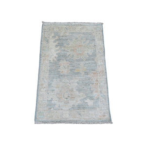 2'1"x3' Mineral Blue, Hand Knotted, Afghan Angora Oushak With Large Leaf Design, Natural Dyes, 100% Wool, Mat, Oriental Rug FWR122904