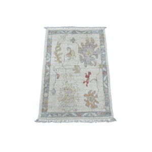 2'x3' Alabaster White, Hand Knotted, Afghan Angora Oushak With Floral Pattern, Vegetable Dyes, 100% Wool, Mat, Oriental Rug FWR121998