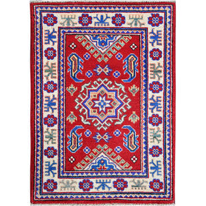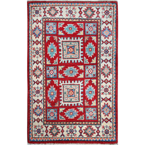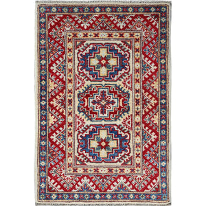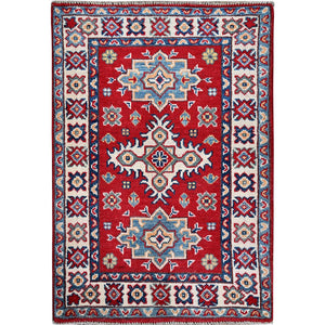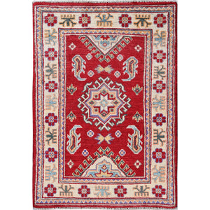 2'x3' Imperial Red, Kazak With Geometric Medallion Design, Vegetable Dyes, Hand Knotted, Soft And Vibrant Wool, Denser Weave, Sample, Mat, Oriental Rug FWR2292