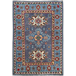 2'x3' Bayern Blue, Kazak With All Over Tribal Motifs, Hand Knotted, Soft Wool, Natural Dyes, Denser Weave, Mat, Sample, Oriental Rug FWR2256