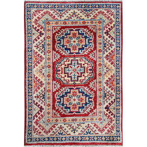 2'1"x3'1" Prismatic Red, Kazak With Tribal Medallions Design, Vegetable Dyes, Soft Wool, Hand Knotted, Denser Weave, Sample, Mat, Oriental Rug FWR2316