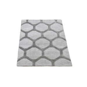 2'x3' Light Gray Hi-low Modern Wool And Silk Mat Hand Knotted Oriental Rug FWR396984