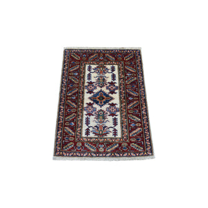 2'1"x2'10" Hand Knotted Tribal Design Super Kazak Soft Afghan Wool Ivory With Pop Of Color Oriental Mat Rug FWR408768