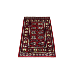 2'6"x4'2" Mori Bokara With Geometric Medallions Design Deep And Rich Red Organic Wool Hand Knotted Oriental Rug FWR416658