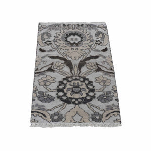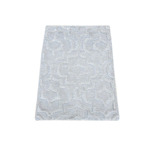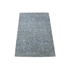 2'x3' Light Gray, Modern Design Silk With Textured Wool, High And Low Hand Knotted, Mat Oriental Rug FWR482118