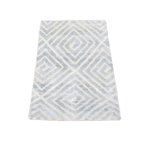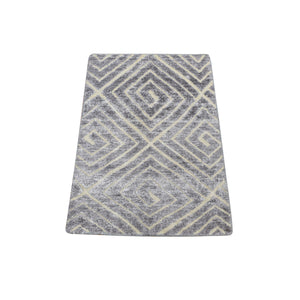 2'x3' Gray, Modern, Geometric Design, Plant Based Silk With Textured Wool, Hand Knotted, Hi And Lo, Mat Oriental Rug FWR482244