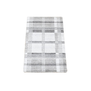 2'x3' Ivory-gray, Hand Loomed, Modern, Plaid Design, 100% Wool, Mat Oriental Rug FWR482226