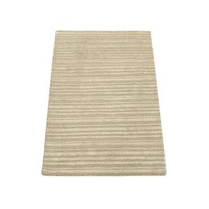 2'x3' Beige, Modern, Stripe Design, Hand Loomed, Wool And Silk, Cut And Loop, Mat, Oriental Rug FWR482502