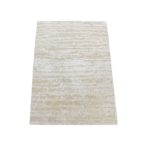 2'x3' Light Beige, Silk With Textured Wool, Modern Design, Hand Knotted, Mat, Oriental Rug FWR482490