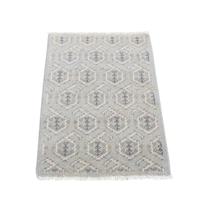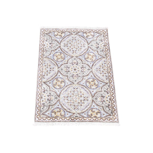 2'x3'2" Platinum Gray, Rajasthan With All Over Design, Hand Knotted 100% Wool, Mat Fragment Sample Oriental Rug FWR483678