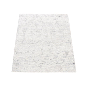 2'2"x3' Ivory, Modern With Repetitive Curvilinear Design Undyed Natural Wool, Hand Knotted Tone On Tone, Mat Oriental Rug FWR483618