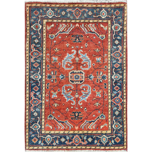 2'x2'10" Tomato Red, Afghan Peshawar With Serapi Heriz Design, Vegetable Dyes Dense Weave, Pure Wool Hand Knotted, Mat Oriental Rug FWR495786
